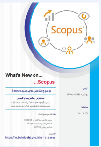 دوشنبه مورخ 1400/5/11 وبینار آشنایی با ویژگی های جدید در Scopus  را با سخنرانی جناب آقای دکتر پیام کبیری رئیس مرکز توسعه و هماهنگی اطلاعات و انتشارات علمی در سطح ملی برگزار میگردد