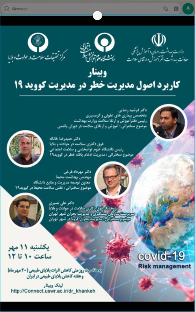 وبینار کاربرد اصول مدیریت خطر در مدیریت کووید ۱۹
