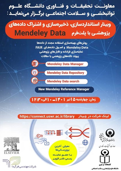 وبینار آموزشی  استاندارد سازی، ذخیره سازی و اشتراک داده های پژوهشی با پلت فرم Mendeley Data
