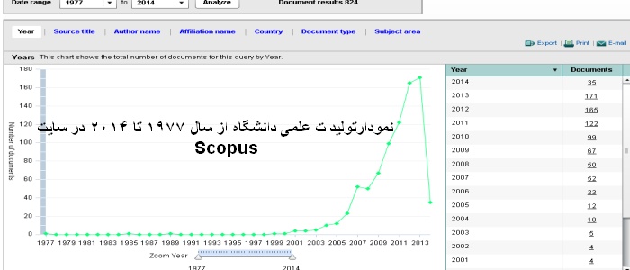 نمودار تولیدات علمی دانشگاه  ازسال 1977 تا 2014 .