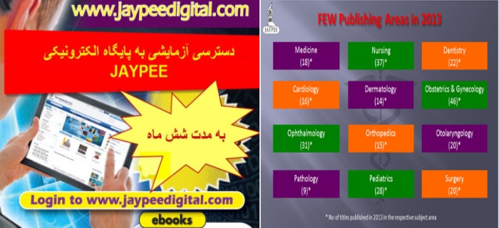 •·         JAYPEE DIGITAL محل دسترسی محصولات الکترونیکی ناشر شامل کتب الکترونیکی، ژورنال و ویدئوهای آموزشی پزشکی است.