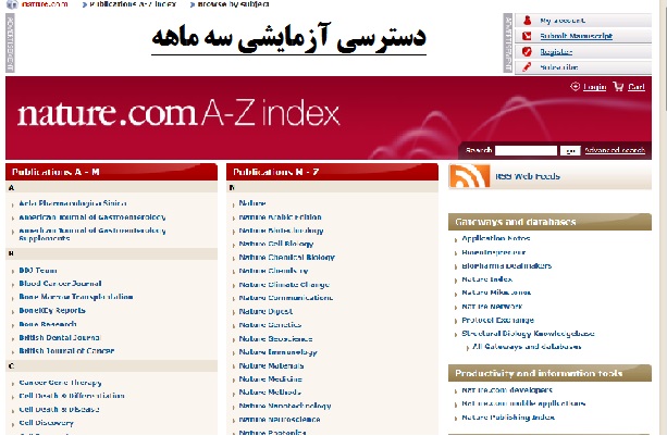 دسترسی آزمایشی دانشگاه  به 93 عنوان مجله گروه انتشاراتی Nature   در آدرس زیر به مدت سه ماه  فراهم گردیده است.