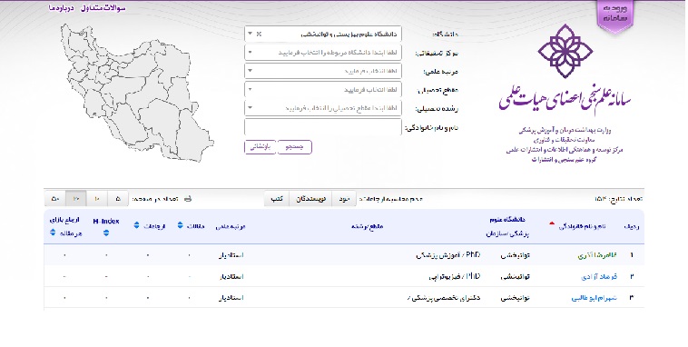 سامانه علم سنجی اعضای هیات علمی دانشگاه
